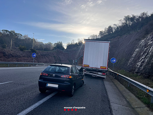 Els fets van succeir el mateix dia 21, cap a les 08:45 h, quan els agents van rebre un avís que s’havia produït un accident de trànsit a la carretera C-25, al punt quilomètric 193, dins el terme municipal de Sant Sadurní d’Osormort (Osona). Una tractora amb semiremolc havia estat encalçada per un vehicle, sense causar ferits.
