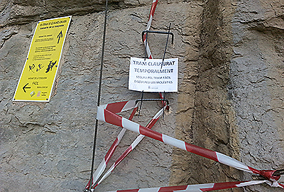 Per indicació dels Agents Rurals és va haver de clausurar temporalment el pas difícil del tram de la Tosquera de la via ferrada de les Baumes Corcades de Centelles.