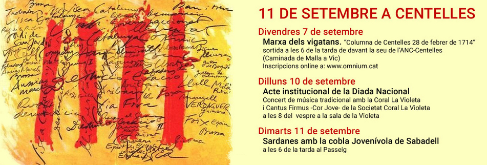 Actes del 11 de setembre a CentellesDissabte, 8 de setembre de 2018 - 19:10 h Actes del 11 de setembre a Centelles